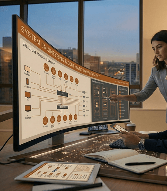 Focusing on comprehensive drafting and integrated technology design, we support projects across medium to large-scale commercial developments by delivering coordinated audiovisual, security systems, and lighting control solutions. We work closely with architects, consultants, developers, and contractors to ensure every system is seamlessly planned, accurately documented, and fully aligned with the project vision.